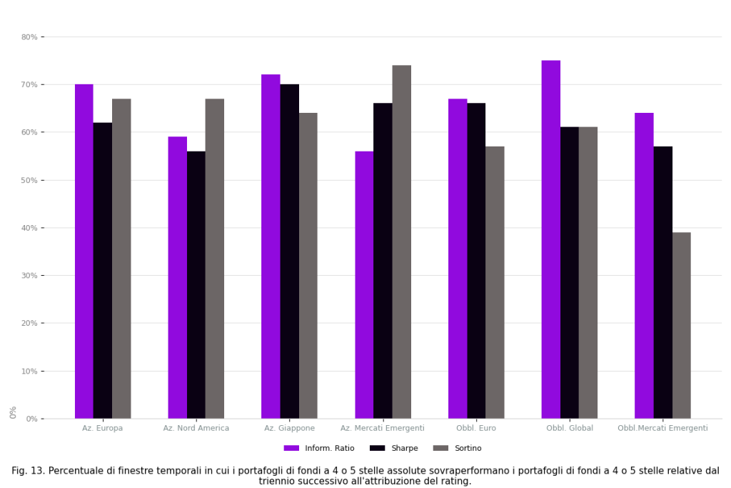 Uno studio effettuato nel 2022 sull’argomento (ABSOLUTE OR RELATIVE: THE DARK SIDE OF FUND RATING SYSTEMS – Carluccio, Cucurachi, Pomante) mostra come il sistema di rating tradizionale (classifica relativa) è spesso fuorviante, infatti il 56% dei fondi azionari riceve un rating positivo (uguale o superiore a 3 su 5) nonostante abbia ottenuto una performance inferiore al mercato di riferimento.